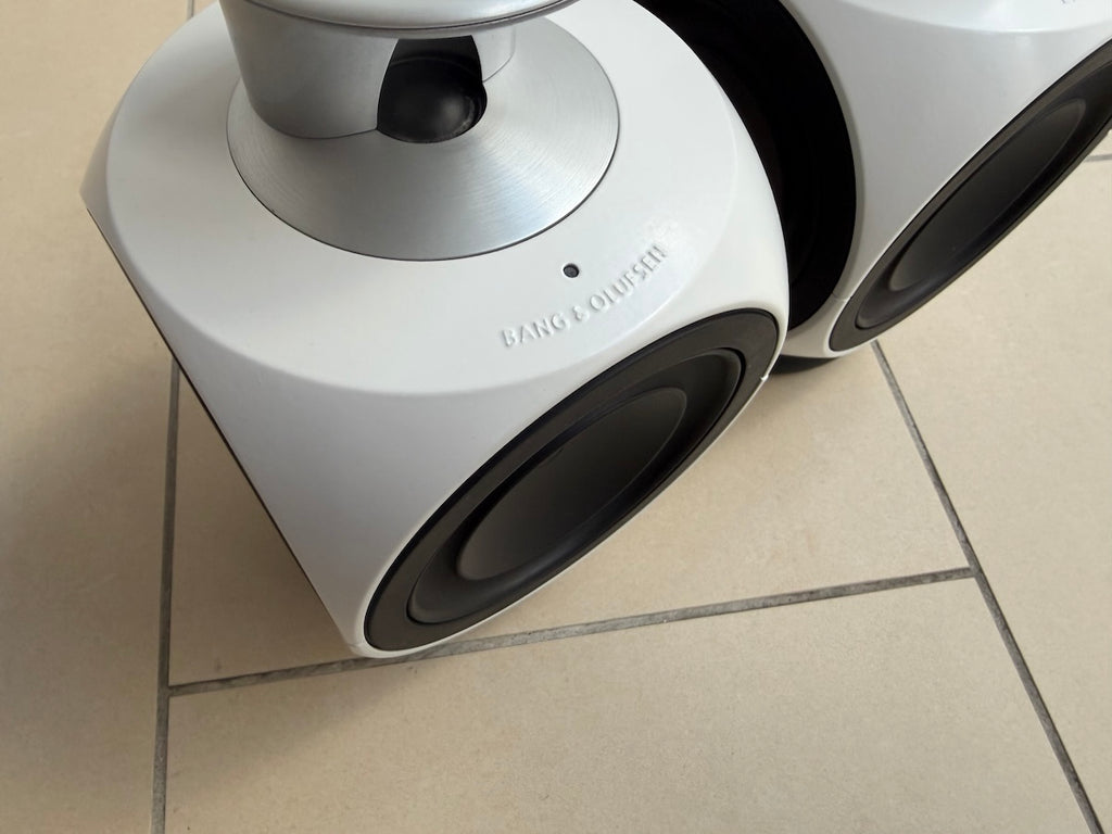 Ein Paar BeoLab 3 im gepflegten Zustand, komplett neu lackiert in weiß.