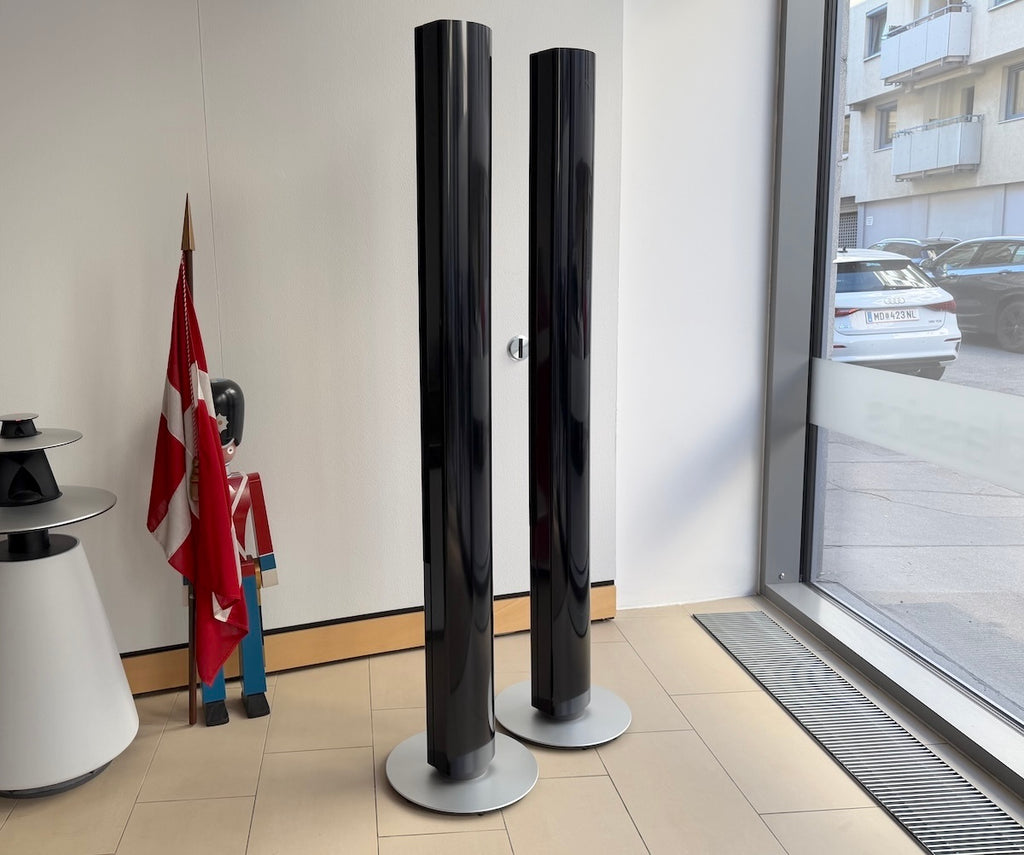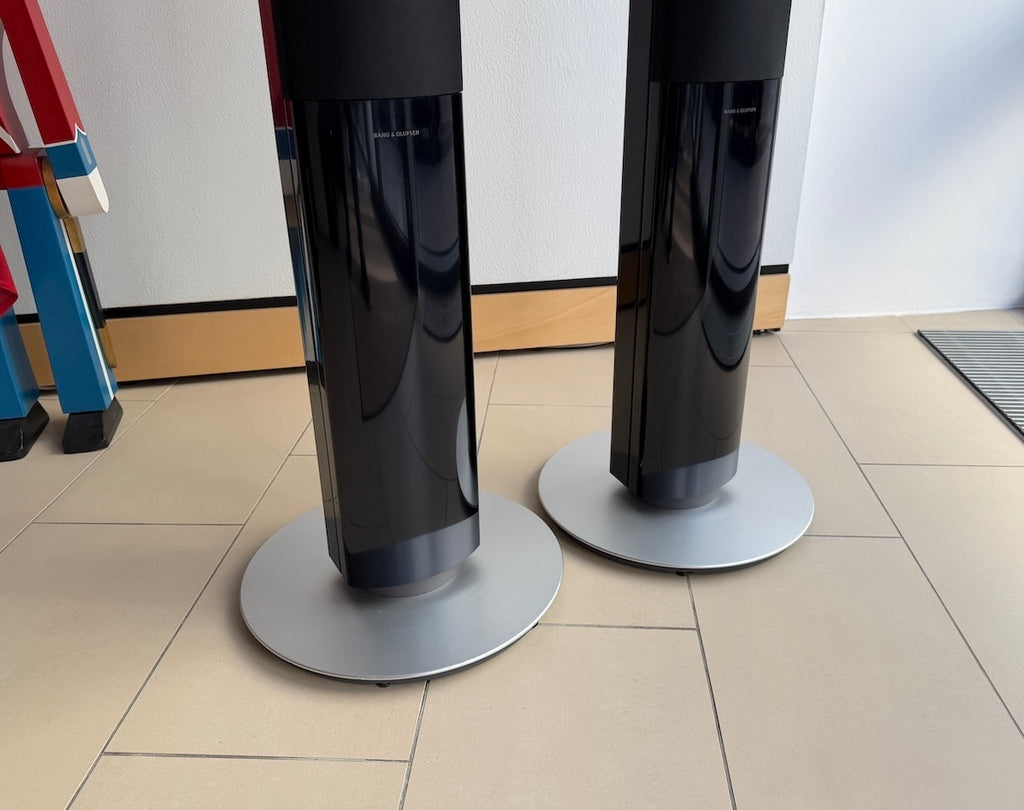 Ein Paar BeoLab 1 in schwarz, im gepflegten Zustand mit kleinen Gebrauchsspuren, siehe Fotos. Lieferung mit Anschlusskabeln und 6 Monaten Garantie.