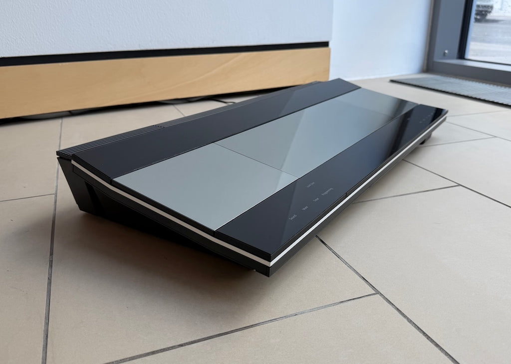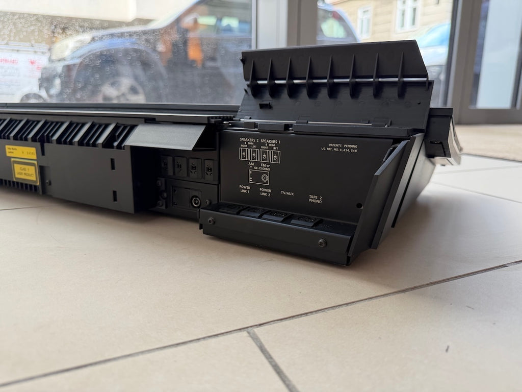 Ein BeoCenter 9300 aus dem Jahr 1995, kürzlich komplett überholt, auch die Glasscheiben wurden neu verklebt. Ein kleiner Kratzer auf der mittleren verspiegelten Blende, siehe Fotos, sonst tadellos. Lieferung mit Bedienungsanleitung und 6 Monaten Garantie.